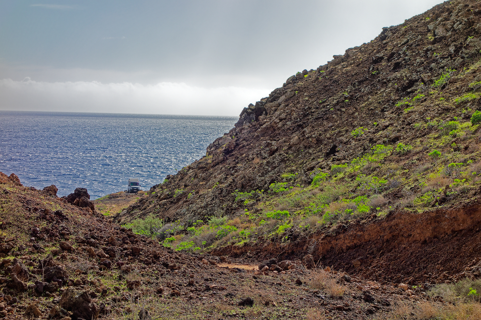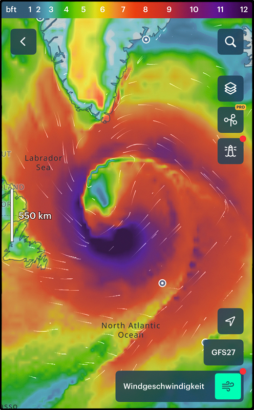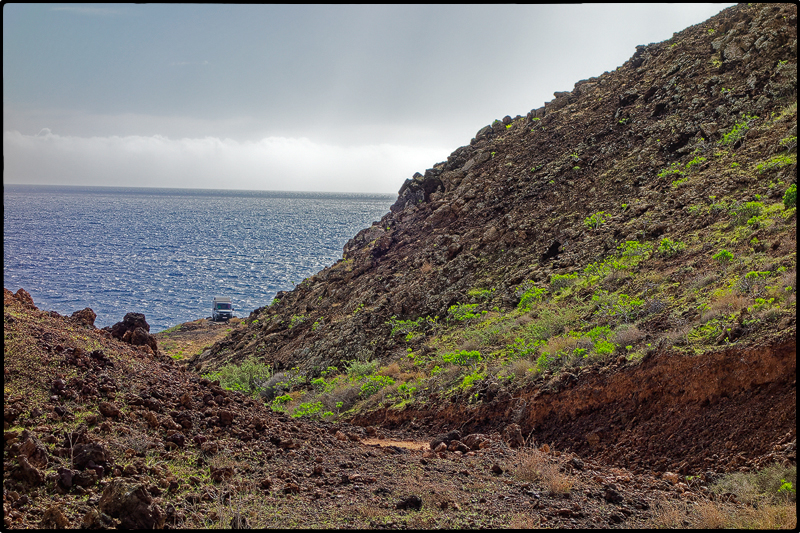 Am 16. Dezember kurz nach Mittag fahren wir bei strömenden Regen im Hafen von Cadiz auf die Fähre, die uns nach Lanzarote bringen soll. Schon beim Einchecken erfahren wir, dass es bei der Abfahrt Verzögerungen geben wird, weil draußen auf dem Atlantik ein Sturm tobt. Die Recherche am Handy zeigt einen Hurrikan, der wirklich böse aussieht. Unser Schiff bleibt vorerst im Hafen und legt mit 11 Stunden Verspätung ab. Wir sind sehr dankbar dafür, denn auch so ist die Fahrt noch bewegt genug, aber immerhin sicher. Letztlich kommen wir 17 Stunden später als geplant an.