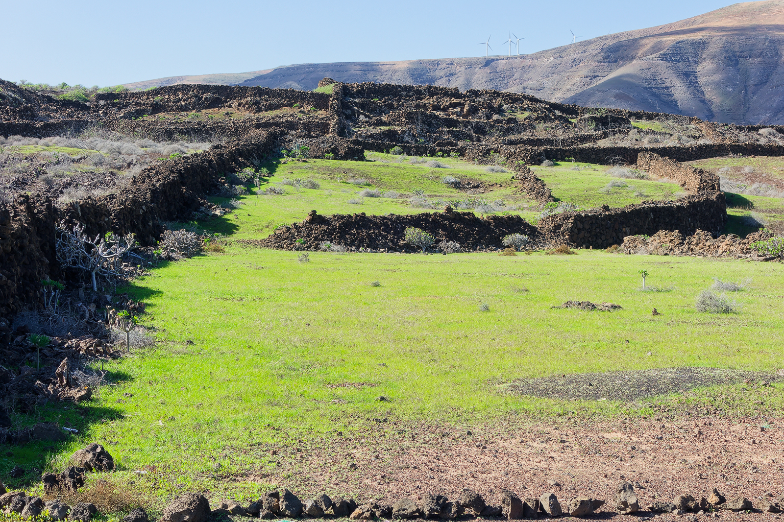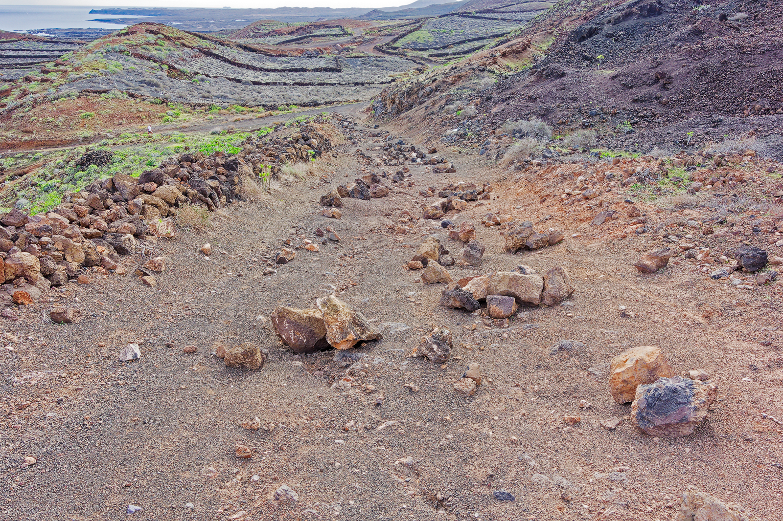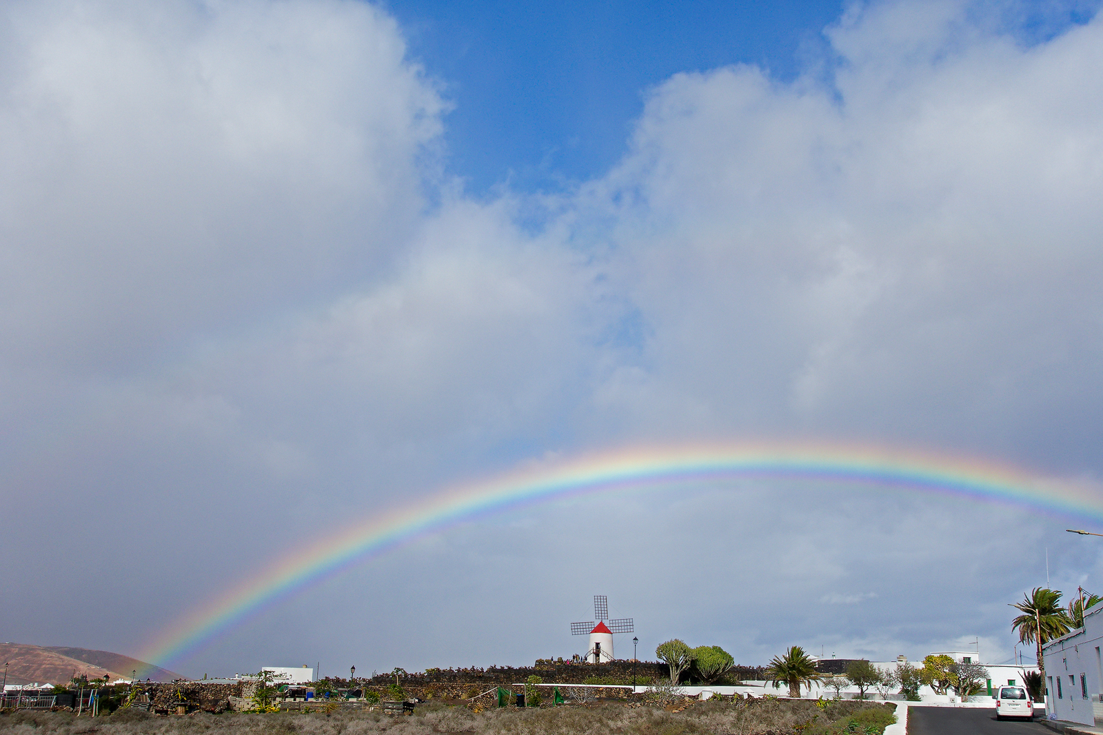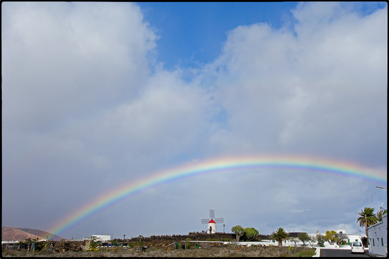 Über dem schwarzen Vulkangestein und den hellen Sanddünen Lanzarotes zeigen sich in diesem Dezember unzählige Regenbogen. Nahezu täglich regnet es, was die Wanderungen oft erschwert und gelegentlich werden Wege wegschwemmt, aber mit jedem Regen kommt mehr grün in die Landschaft.
