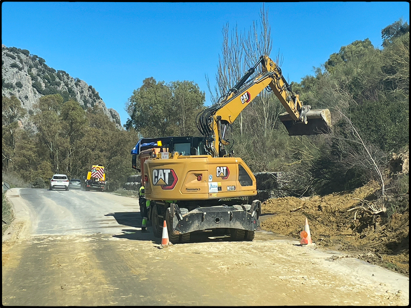 Die Spuren des stürmischen Wetters der letzten Wochen in Andalusien sind noch gut zu sehen. Auf etlichen Straßen sind die Überschwemmungen zwar zurückgegangen, aber an der Beseitigung der Fahrbahnschäden wird noch gearbeitet.