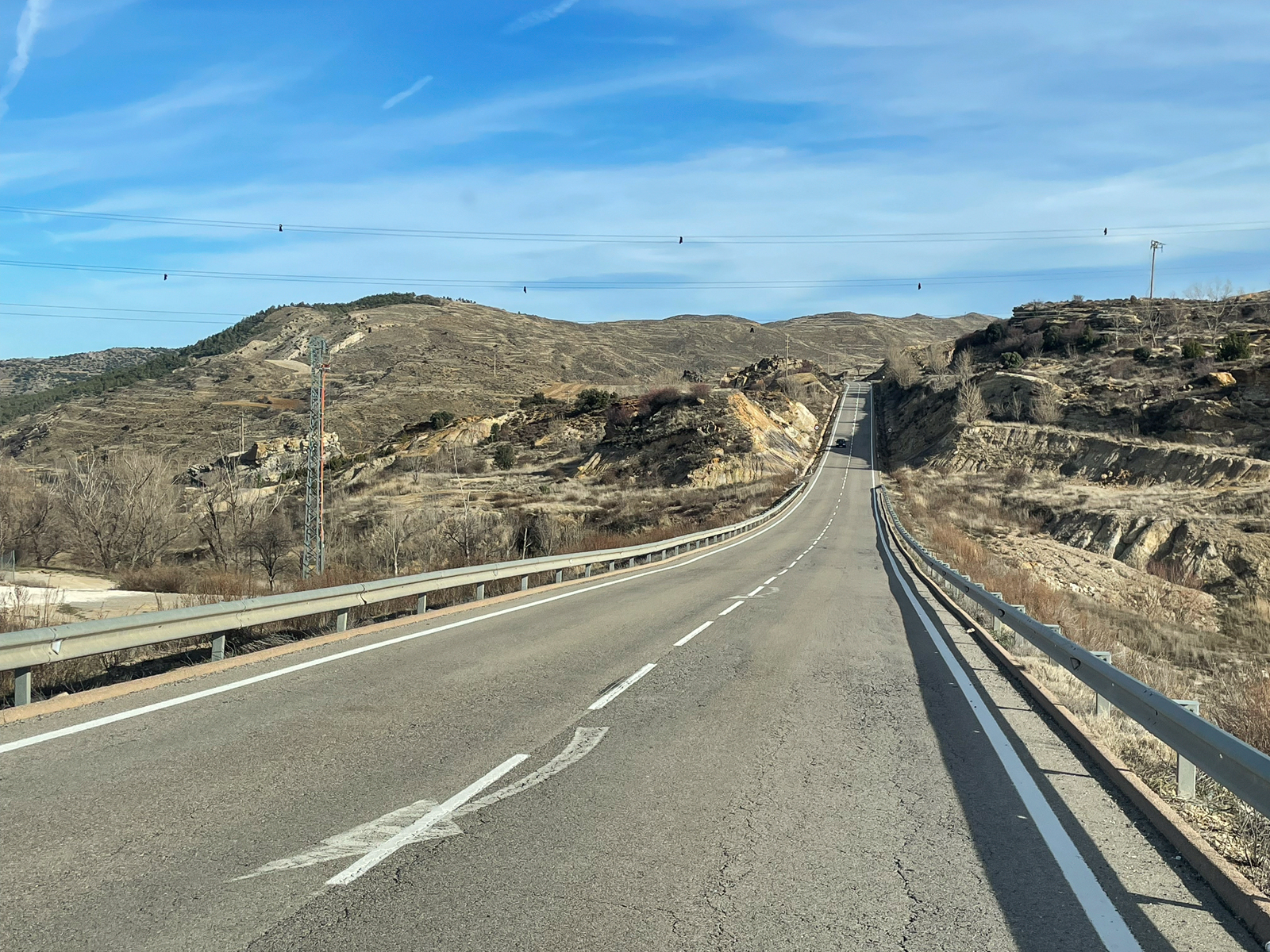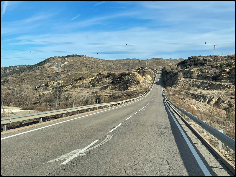 Wir wissen aus Erfahrung, dass die Autobahn entlang der spanischen Küste grauslich ist. Die Dichte des LKW-Verkehrs um Valencia überrascht uns dann aber doch. Wir biegen Richtung Nordwesten ab und fahren durch die Pampa Richtung Pyrenäen. Gute Entscheidung!
