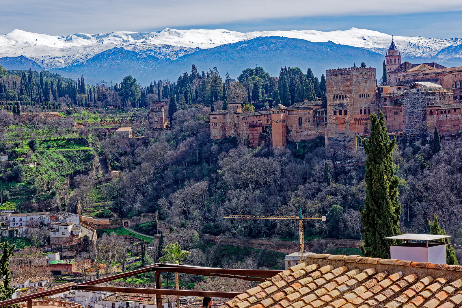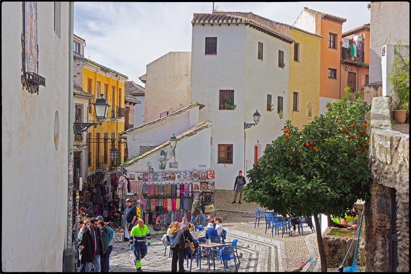 Weiter unten, in der Stadt Granada, ist es warm genug, um im Freien unterm Orangenbaum zu sitzen.