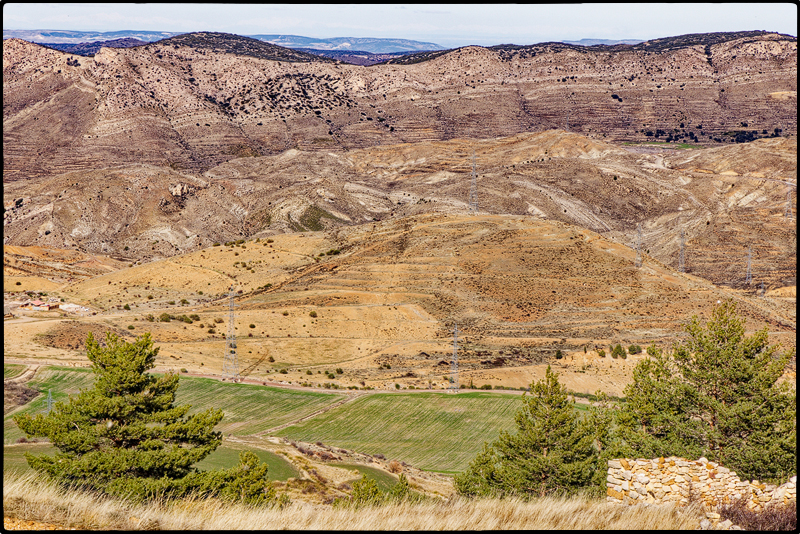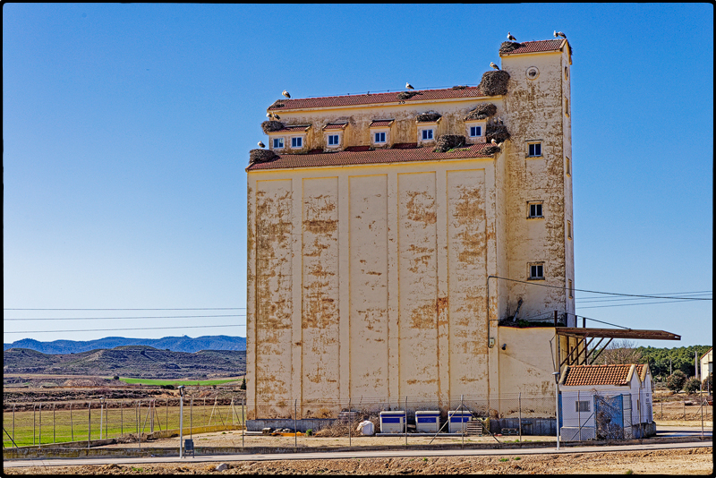 Die Fahrt ist nicht unanstrengend, die Straßen zum Teil richtig schlecht, gelegentlich kommen wir wegen einer Sperre gar nicht weiter und müssen lange Umwege in Kauf nehmen, aber die Landschaft ist schön. Aragon gehört zu den am dünnsten besiedelten Regionen Spaniens - die geringe Bevölkerungsdichte bezieht sich auf Menschen, nicht auf Störche.